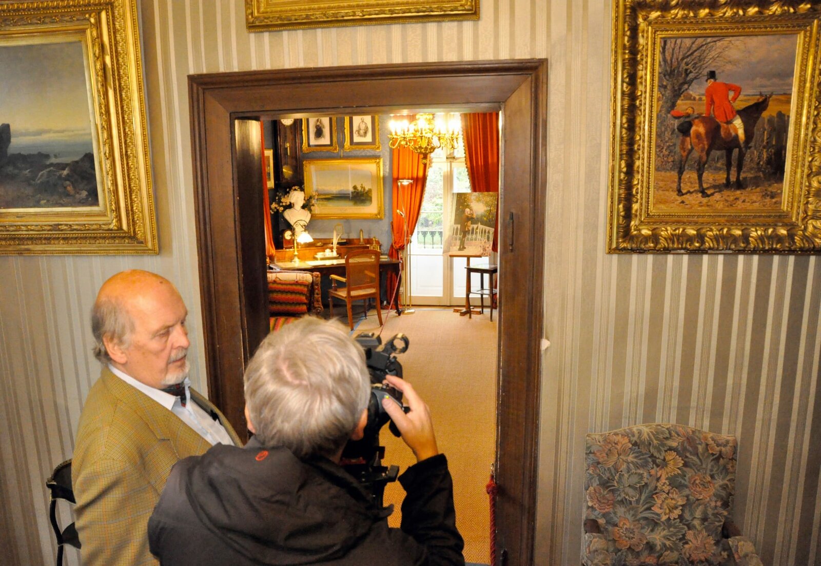 "Land der Berge Spezial", "Kaiser Franz Joseph und das Salzkammergut." Schauspieler und Autor Miguel Herz-Kestranek führt in dieser Dokumentation an die historisch-kaiserlichenSchauplätze des Salzkammerguts . Im Jahr 2016, am 21. November, jährt sich zum hundertsten Male der Todestag von Kaiser Franz Joseph. Zahlreiche Dokumentationen beschäftigen sich mit der Rolle des Monarchen als Oberhaupt, als Vaterfigur der K.u.K .Monarchie, aber auch mit dem langsamen Verfall des Habsburger- Reiches und seinem Untergang im Ersten Weltkrieg.Als Gegenstück zum Schwergewicht der politischen Thematik zeigt die vorliegende Dokumentation die private Seite des Monarchen.Nirgendwo konnte er bei all seinem Pflichtbewusstsein als " oberster Beamter" der Monarchie seine Privatheit so ausleben wie im Salzkammergut. Jahrhundertelang war die Gegend zwischen Hallstatt und Ischl ja Privatbesitz seiner Vorfahren gewesen; aus rein wirtschaftlichen Gründen, des " weißen Goldes " wegen, das dem kaiserlichen Kammergut auch den Namen gab.Mit Kaiser Franz Joseph kam ein neuer, wesentlicher Aspekt hinzu. Seine lebenslange Verbundenheit mit der Region, seine Sommerfrische im geliebten Ischl zogen wie ein Magnet neben großen Teilen des Hofes und des Adels vor allem die kulturelle Elite seiner Epoche zahlreich an: Komponisten, Schriftsteller, Schauspieler. Sie alle fanden im Salzkammergut ihr Refugium , ließen das Land zu einem zumindest im Sommer kulturellen Zentrum der Monarchie erblühen. Das Leben des Monarchen war vor allem eng mit Ischl verbunden Der älteste der drei"Salzprinzen " feierte dort bereits seinen ersten Geburtstag. Des 18. August gedenkt dieStadt bis heute. In Ischl feierte er seine Verlobung mit der Wittelsbacherin Elisabeth. Für dienaturbegeisterte Kaiserin wurde Ischl folglich auch zum Ausgangpunkt für zahllose, von ihr inGedichten besungene Ausflüge in die Gebirgswelt des Salzkammergutes, die der Kaiserwiederum seiner großen Passion, der Jagd wegen liebte und besuchte.In Ischl erreichten ihn aber auch die Nachrichten von Katastrophen; wie etwa jene vonKöniggrätz, wo vor 15o Jahren der Untergang seines Reiches eingeleitet wurde. Währendseines letzten sommerlichen Aufenthalts 1914 musste Kaiser Franz Joseph schließlich auchjene Kriegserklärung unterzeichen, die " in Europa die Lichter ausgehen ließ "und die Weltin das Inferno des Ersten Weltkriegs stürzte.Ausgehend vom noch zu Lebzeiten Franz Josephs 19o6 zu " Bad Ischl " erhobenenKurort folgt der Film den Spuren des Kaisers ausgehend vom Fuschlsee, dem Wolfgangsee und dem Mondsee über das Tal der Vöckla, über den Traunsee und das Almtal bis hin zur Dachsteinregion ins Ausseerland.Die bis heute andauernde Ausstrahlung einer kaiserlichen, vor allem kulturell geprägten Epoche wird in allen Teilen des Salzkammerguts beleuchtet, das ja von Liebhabern gerne als " zehntes österreichisches Bundesland " bezeichnet wird. Diese Rolle bewahrte sich die Region bis heute, trotz aller politischen Umbrüche des letzten Jahrhunderts. Die wesentlich von Franz Joseph geprägte Faszination einer idealen Berg- Seen- und Seelenlandschaft strahlt über seinen Tod hinaus.Im Bld: Lutz Maurer und Kameramann Manfred Rastl vor dem Arbeitszimmer von Kaiser Franz Josef.Bild: © ORF/Florian Maurer