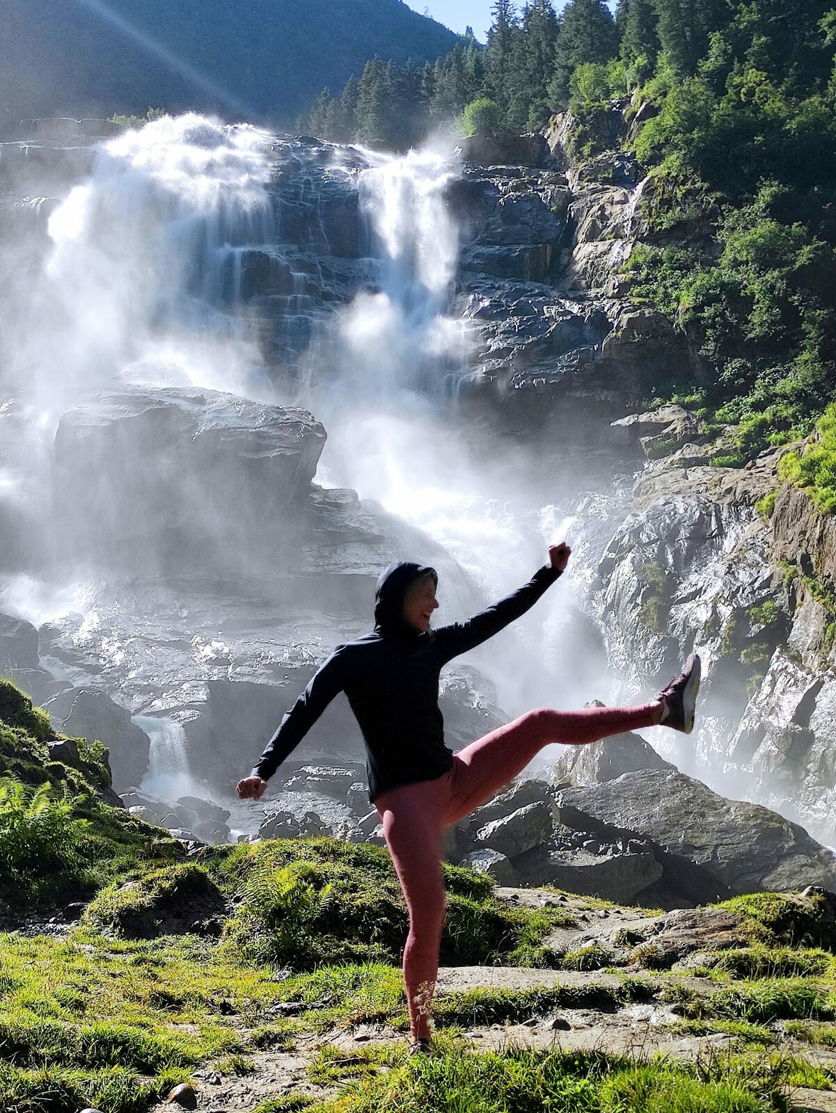 Marlies Raich vor dem Grawa Wasserfall.Bild: © ORF/Toni Silberberger