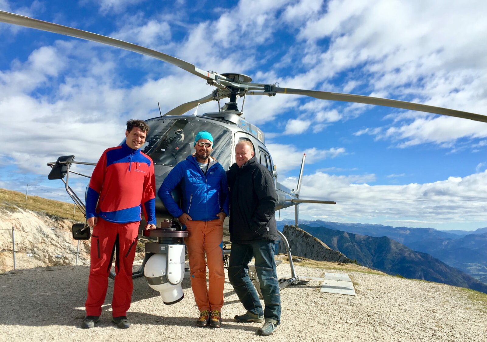 Ein Teil des Teams vor dem Hubschrauber.Bild: © ORF/Florian Maurer
