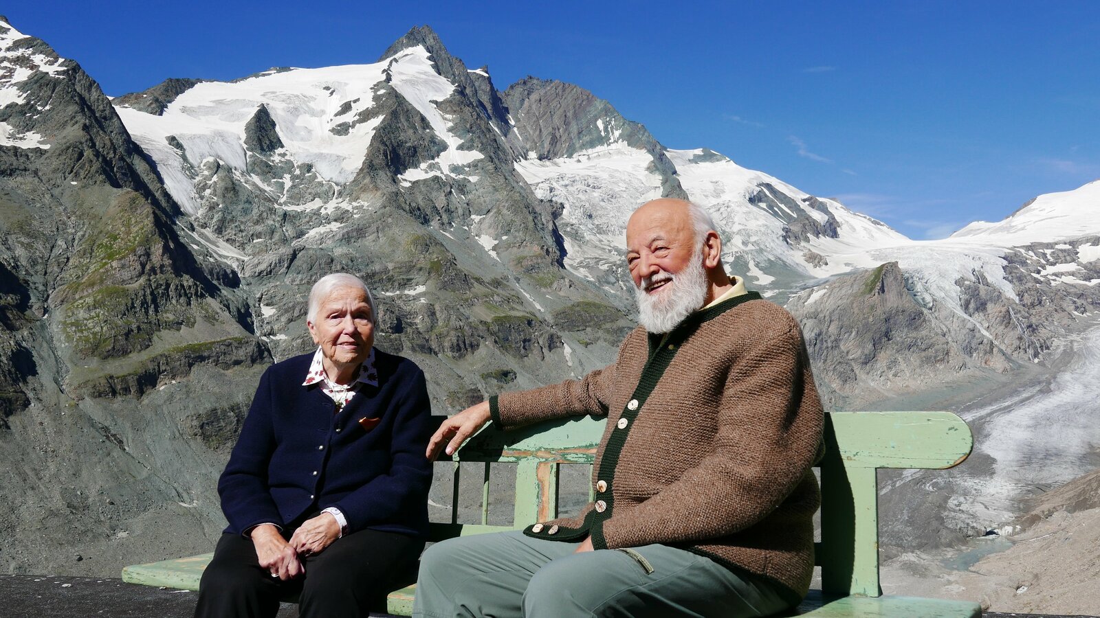 Dreharbeiten zu „Mein Lebensberg – Sepp Forcher und der Großglockner“: Helli und Sepp Forcher auf der Kaiser-Franz-Josefs-Höhe, im Hintergrund der Glockner und die Pasterze.Bild: © ORF/Landesstudio Steiermark/Heribert Senegacnik
