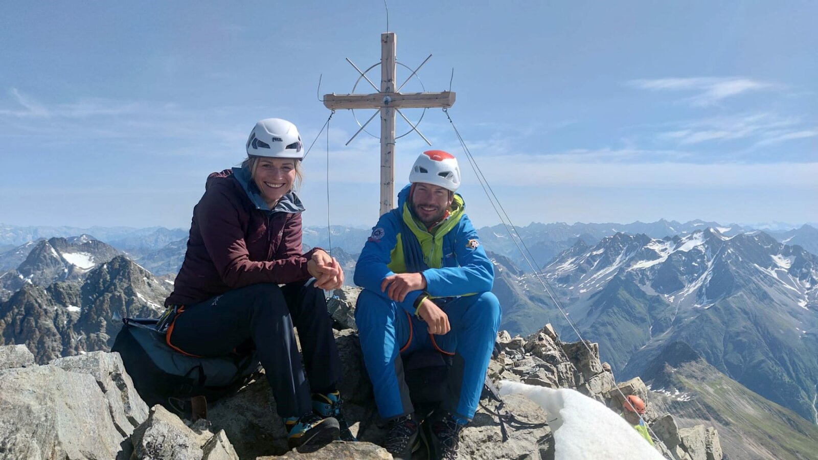 Marlies Raich mit Bergführer Raphael Eiter.Bild: © ORF/ORF III/Toni Silberberger