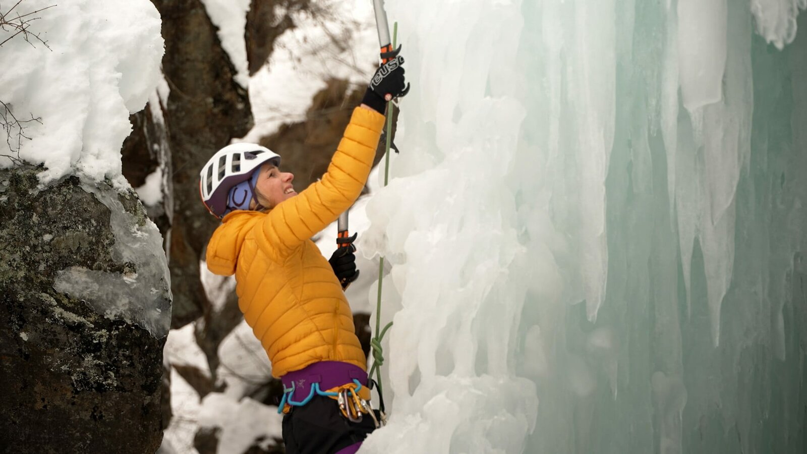 Marlies Raich beim Eisklettern.Bild: © ORF/ORF III/Toni Silberberger
