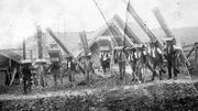 Materialanlieferung für den Bau des Kaiser Jubiläumsschutzhauses 1898. Archiv Radacher.Bild: © ORF/ipFILM/Stefan Sternad
