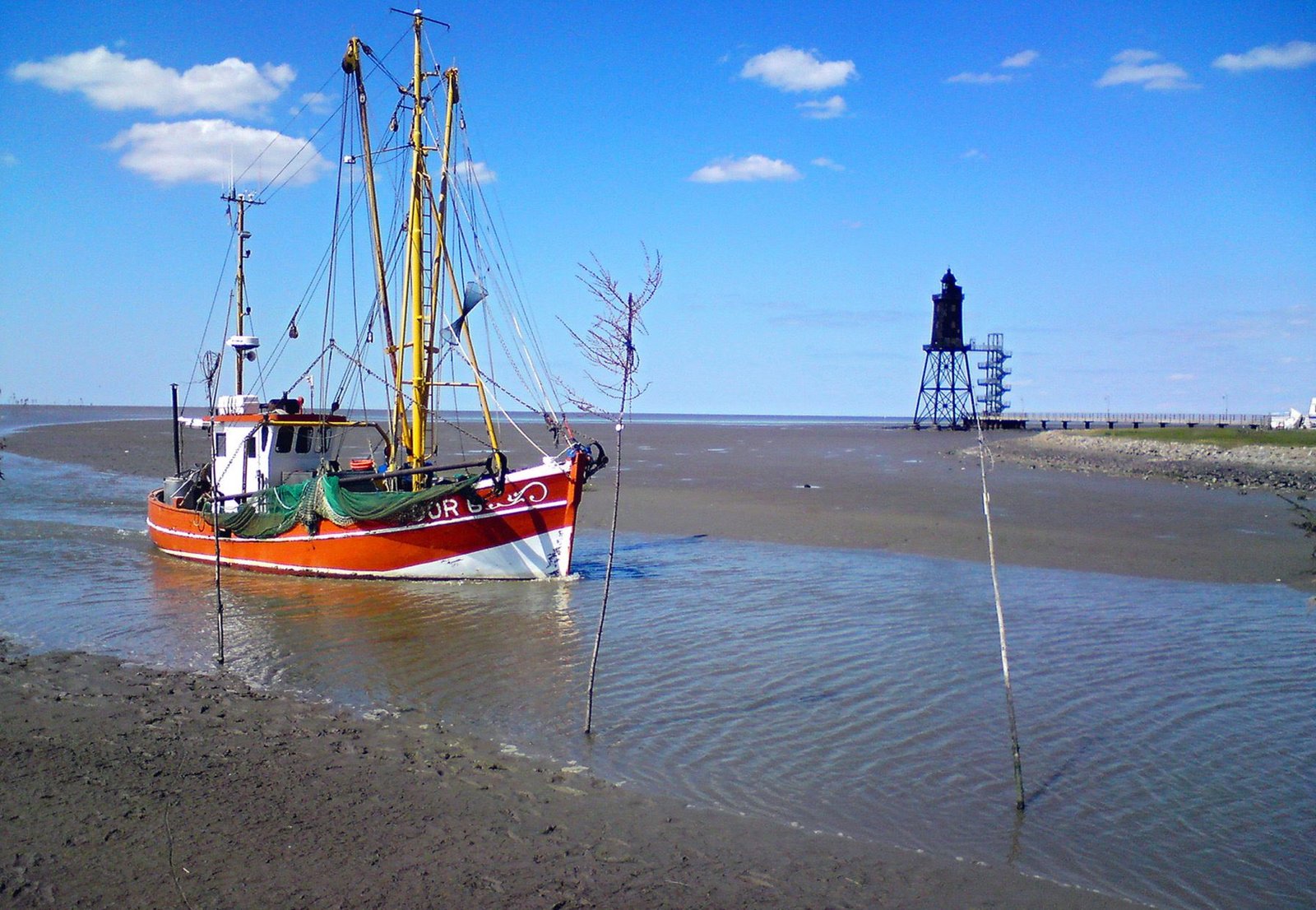 Friesland zwischen Weser und JadeEinlaufen des Krabbenkutter (Dorum-Neufeld) bei Ebbe.Bild: © NDR/Manfred Schulz
