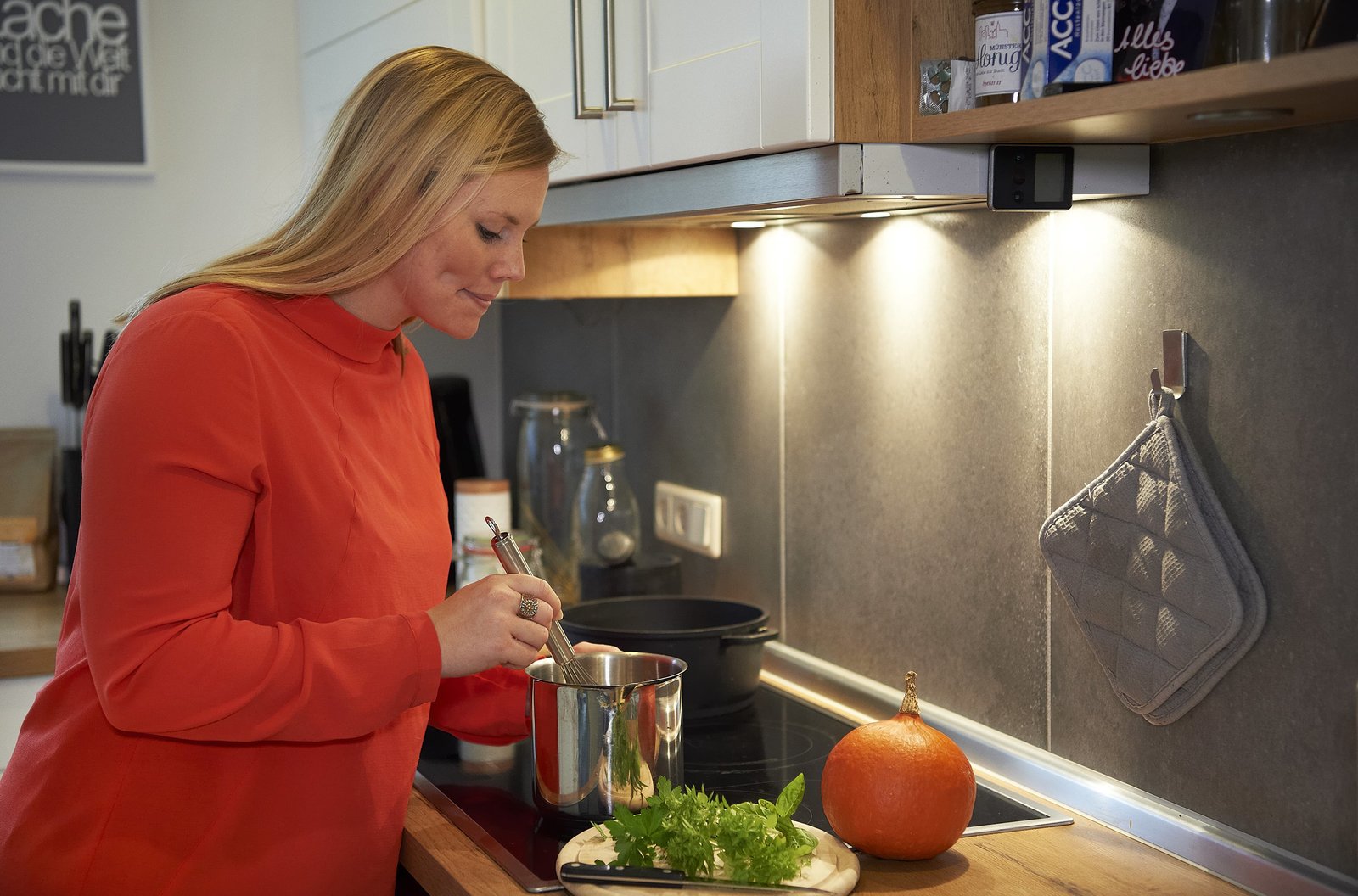 Kulinarische Schätze vom NiederrheinGastgeberin Theresa Coßmann bereitet ihr Landmenü vor.Bild: © WDR/Melanie Grande