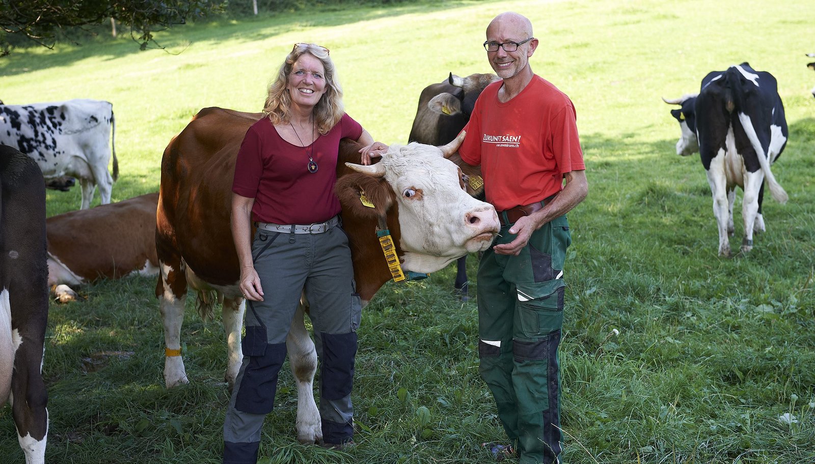 Die Wildkräuter-Lady aus dem Bergischen LandBei den Burgmers vom Breuner Hof dreht sich (fast) alles um Kühe. Auf dem Biobauernhof haben die Tiere viel Platz und bekommen bestes Futter. - Petra Burgmer und ihr Mann HardyBild: © WDR/Melanie Grande
