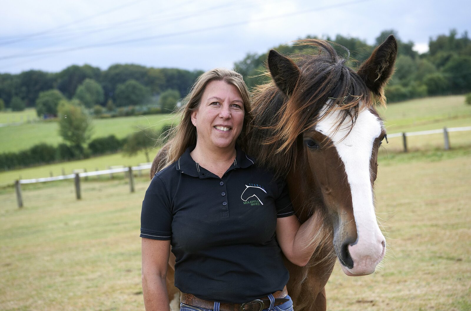 Sanfte Riesen mit britischem Charme aus EngelshagenBirgit Backhaus auf dem Hof Molehill Shire in Hückeswagen.Bild: © WDR/Melanie Grande