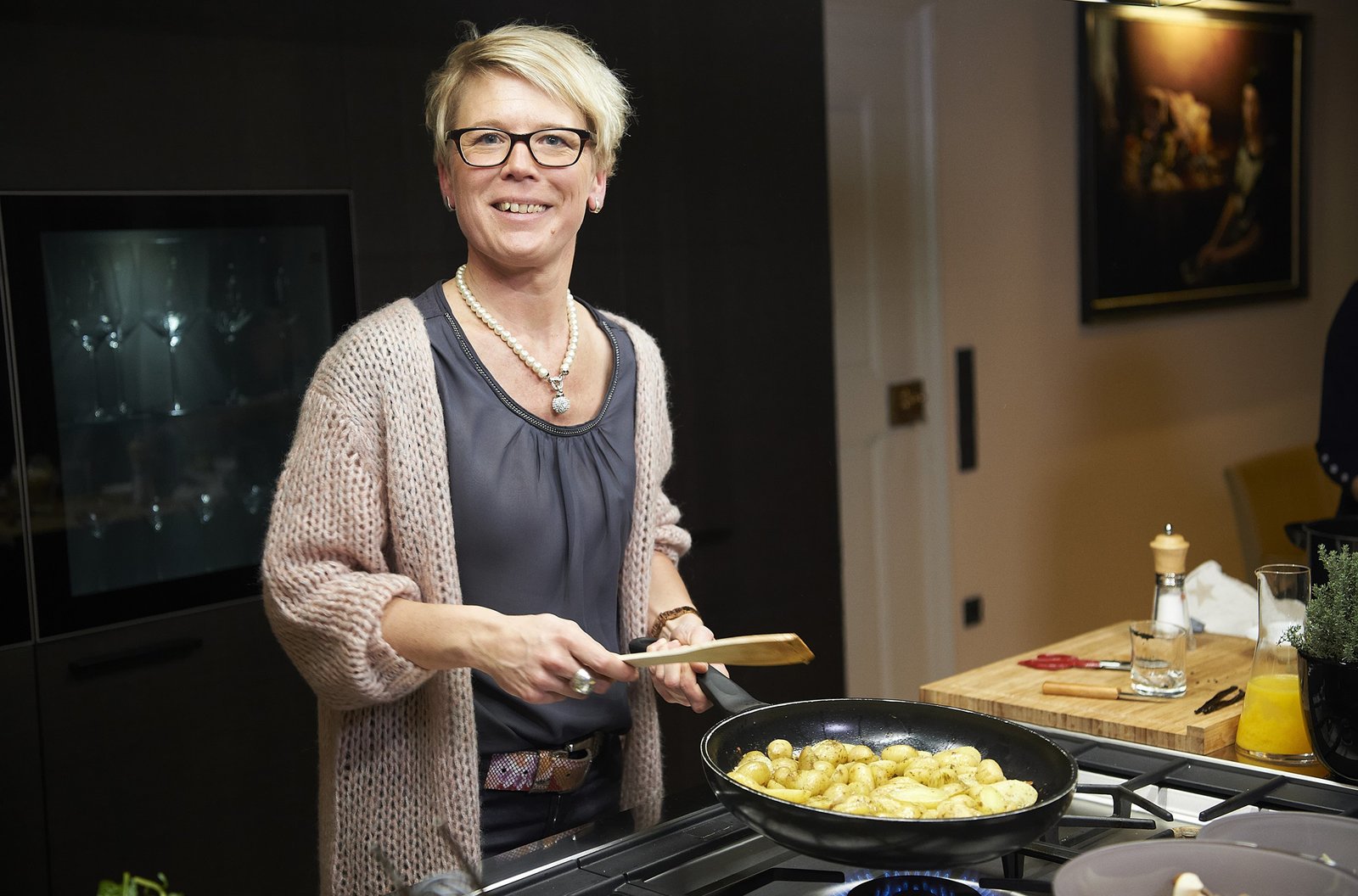 Finale auf dem Stautenhof am NiederrheinGastgeberin Theresa Leiders bereitet ihr Menü zu.Bild: © WDR/Melanie Grande