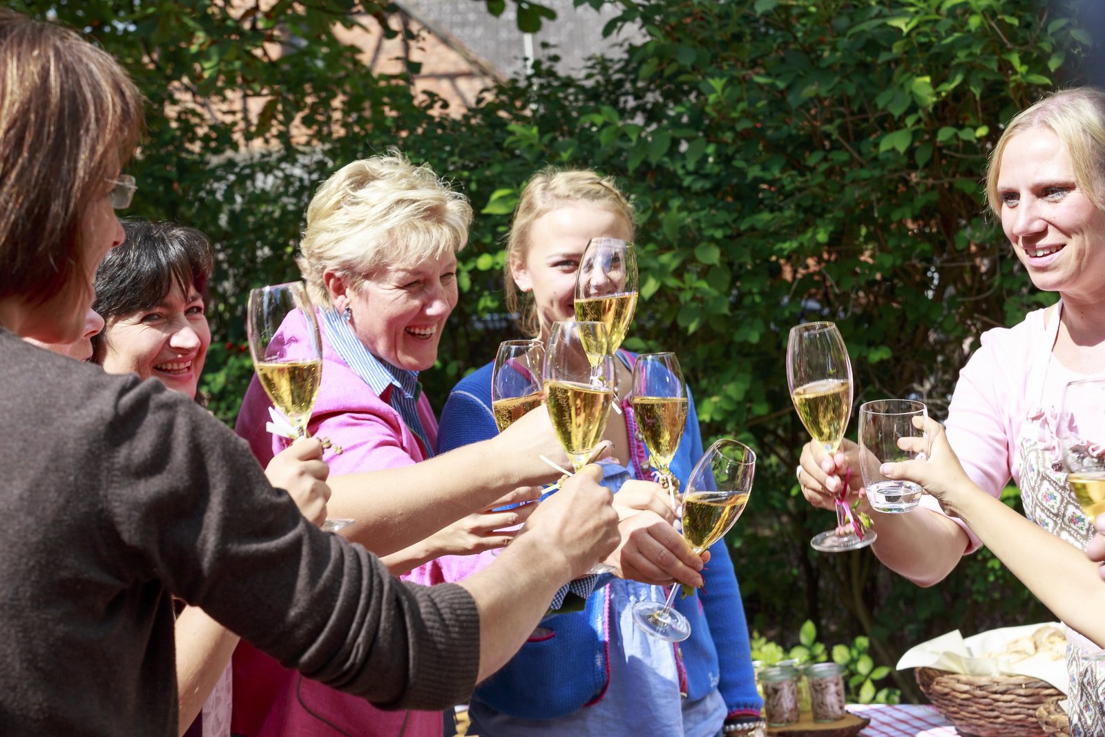 Barbara Birkholz - UnterfrankenDie Landfrauen beim Anstoßen mit dem Begrüßungstrunk.Bild: © BR/megaherz gmbh/Andreas Maluche