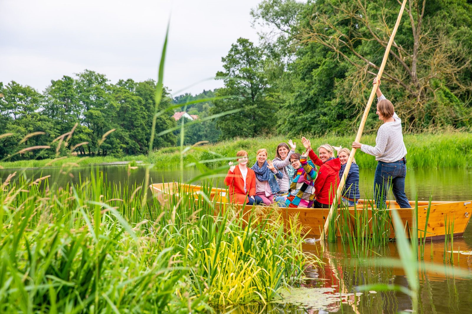 Barbara Weiherer - OberpfalzDie Landfrauen winkend auf einer Zille auf der Naab mit Barbaras Schwester Rita Reil. Von links: Monika Meinel-Hansen, Irmi Lamprecht, Maren Flessenkemper, Ute Leyh, Sonja Schreiber, Katarina Stahl und Rita Reil.Bild: © BR/megaherz gmbh/Moritz Sonntag / Moritz Sonntag