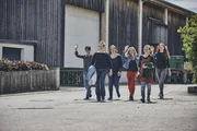 Lena Zimmermann aus SchwabenVon links: Die Landfrauen Karina Schwarzbauer, Eva Gottschaller, Anja Raithel, Nicole Roth, Nina Wagner und Monika Bernhard kommen am Hof von der Gastgeberin an.Bild: © BR/megaherz gmbh/Philipp Thurmaier