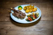 Anja Raithel aus OberfrankenDie Hauptspeise: Streifen von der Bavette in Wellen aufgespießt.Bild: © Moritz Sonntag / BR, megaherz gmbh / BR/megaherz gmbh/Moritz Sonntag