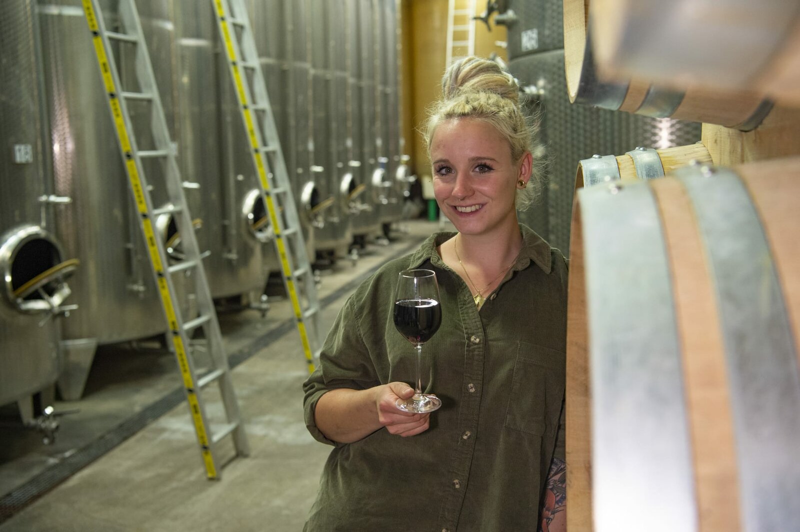 Kulinarische Schätze aus RheinhessenWinzerin Shanna Reis bei der Kontrolle der Trauben auf ihrem Hof in Rheinhessen.Bild: © Melanie Grande / BR, WDR / BR/WDR/Melanie Grande