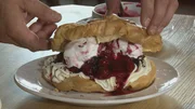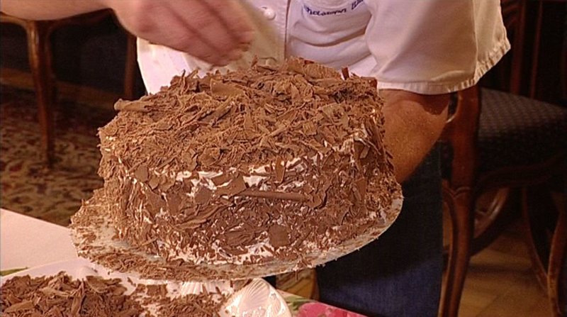 In einem traditionsreichen Cafe in Füssen wird eine "Ludwig-Torte" aus Buttercreme, Biskuit, Sahne und Pflaumenmus gereicht - der König soll eine Vorliebe für Süßes gehabt haben.Bild: © BR/Werner Teufl