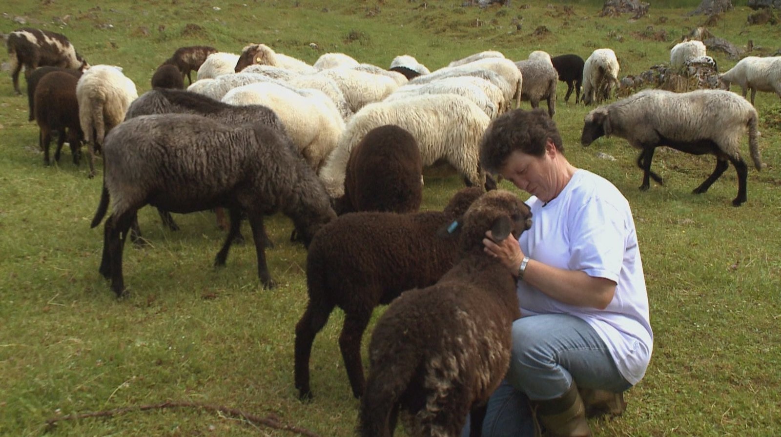 Renate Aschauer mit ihren "Alpinen Steinschafen".Bild: © BR/Werner Teufl