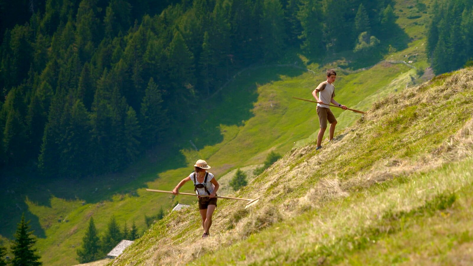 Das Ehepaar Hochegger am Weg zur Mahd.Bild: © ORF/Visualize