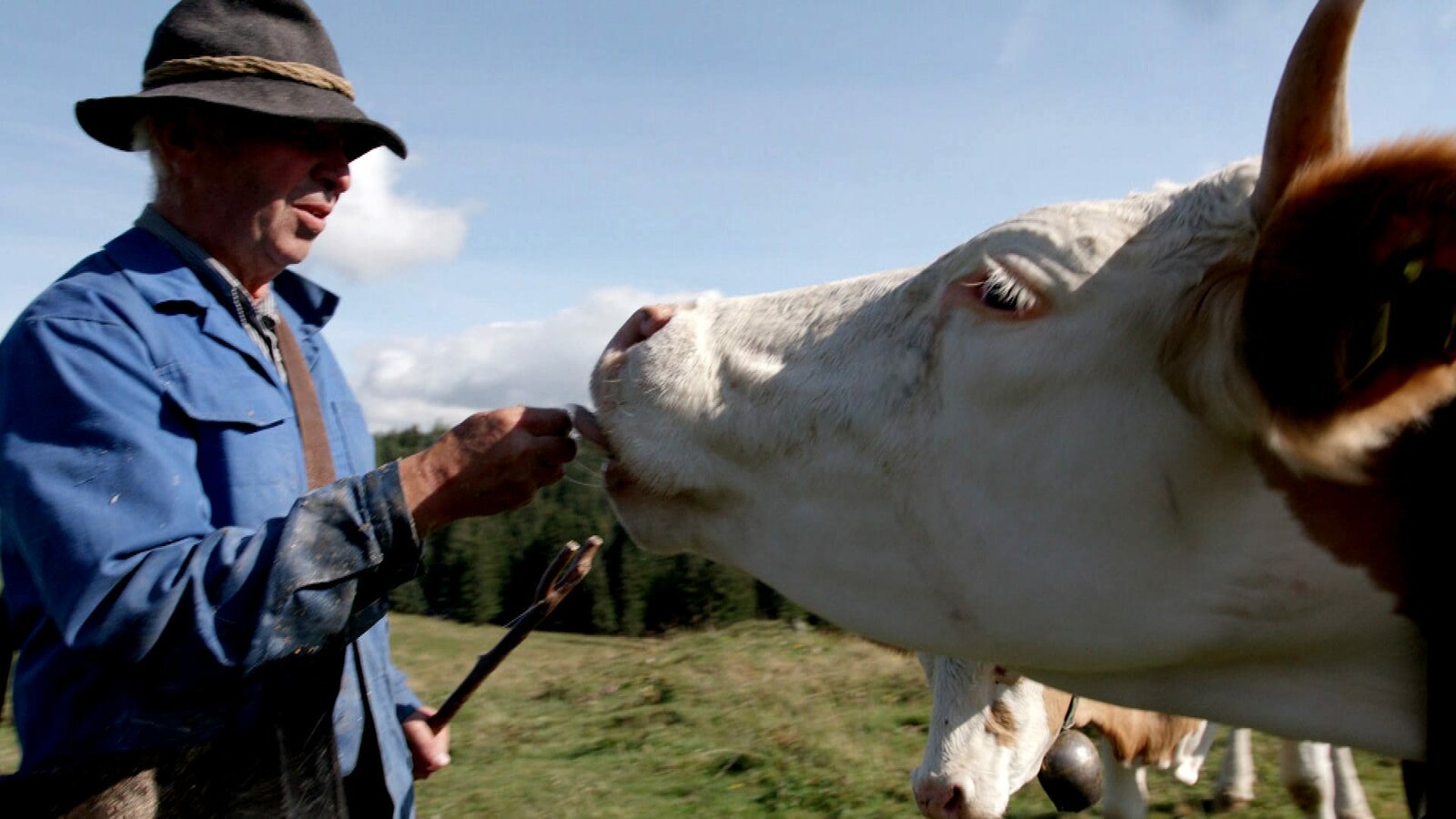 Leben im MariazellerlandFritz Kraft beim Kuh füttern.Bild: © ORF/Weinmann