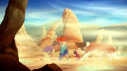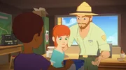 Ungewollter Abschied"Lassie", "Ungewollter Abschied." Ein Erdrutsch hat das Besucherzentrum beschädigt. Es muss vorerst geschlossen bleiben. Damit verliert Harveys Mutter ihre Arbeit. Schweren Herzens entscheidet sie sich, mit Harvey wegzuziehen. Zoé und Harvey suchen verzweifelt nach einer anderen Lösung. Lassie bringt sie auf die Idee, Robert Humphrey um Hilfe zu bitten. Denn seine Hotelgäste nutzten bisher gern die Angebote des Besucherzentrums. Doch Mr. Humphrey hat andere - unverantwortliche - Pläne.ZeichentrickserieBild: © Superprod / ORF / ZDF