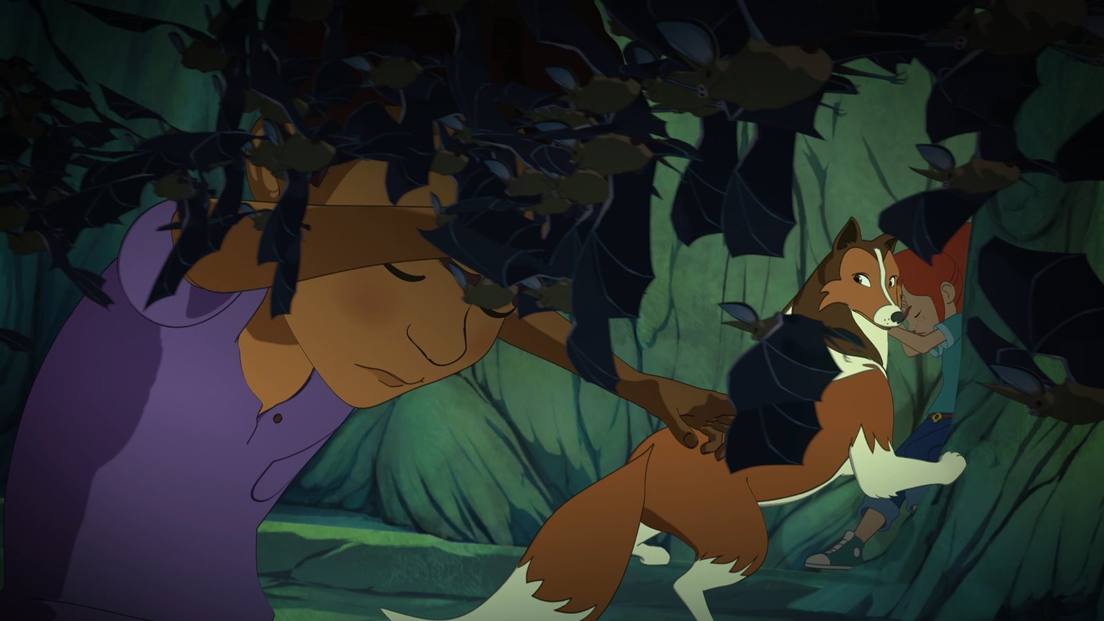 Der Angst ins Auge sehen"Lassie", "Der Angst ins Auge sehen." Gemeinsam mit Sarah wollen Zoé und Harvey herausfinden, was eine Kolonie Fledermäuse aus ihrem Quartier in einer tiefen Kluft verscheucht hat. Als sie dort hinabsteigen, wird ihnen mulmig zumute. Sarah versucht, Zoé und Harvey zu beruhigen, indem sie ihnen die Höhlenwelt erklärt. Doch dann wird sie selbst von Angst gepackt und Zoé muss ihrer Mutter beistehen. Damit die Fledermäuse zurückkehren können, übernimmt Lassie eine äußerst anspruchsvolle Aufgabe.Bild: © ORF/ZDF/Superprod