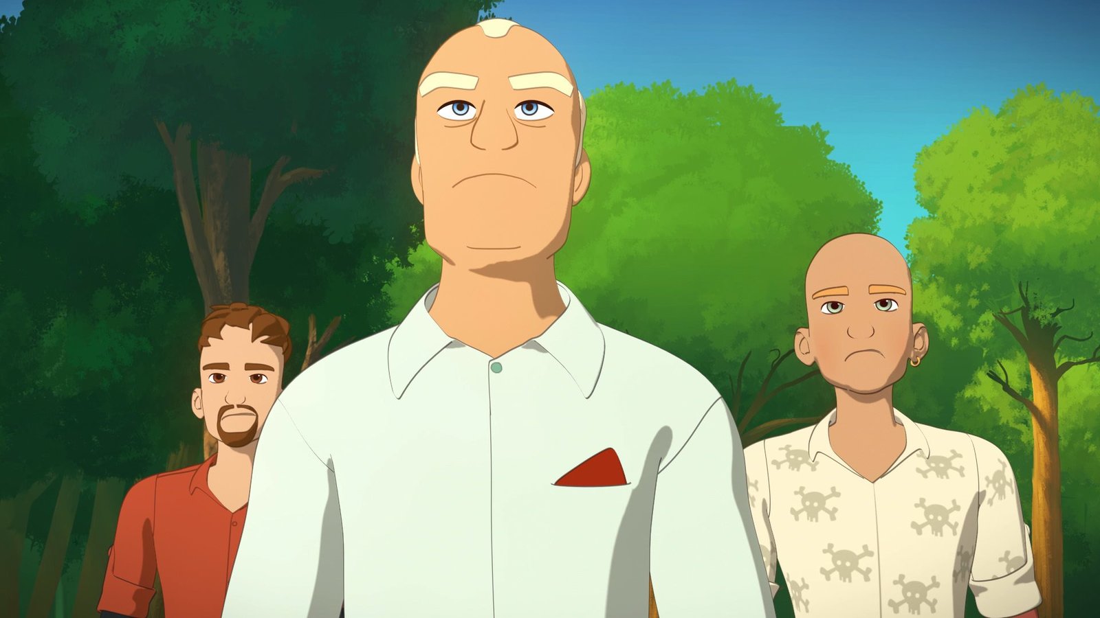 Wiedersehen mit der FreundinZoé (M.) glaubt, dass die in die Natur gelangte blaue Farbe die Tiere krank gemacht hat. Harvey (l.) und Graham (r.) wollen das erst mal überprüfen.Bild: © ZDF/Superprod/ZDFE