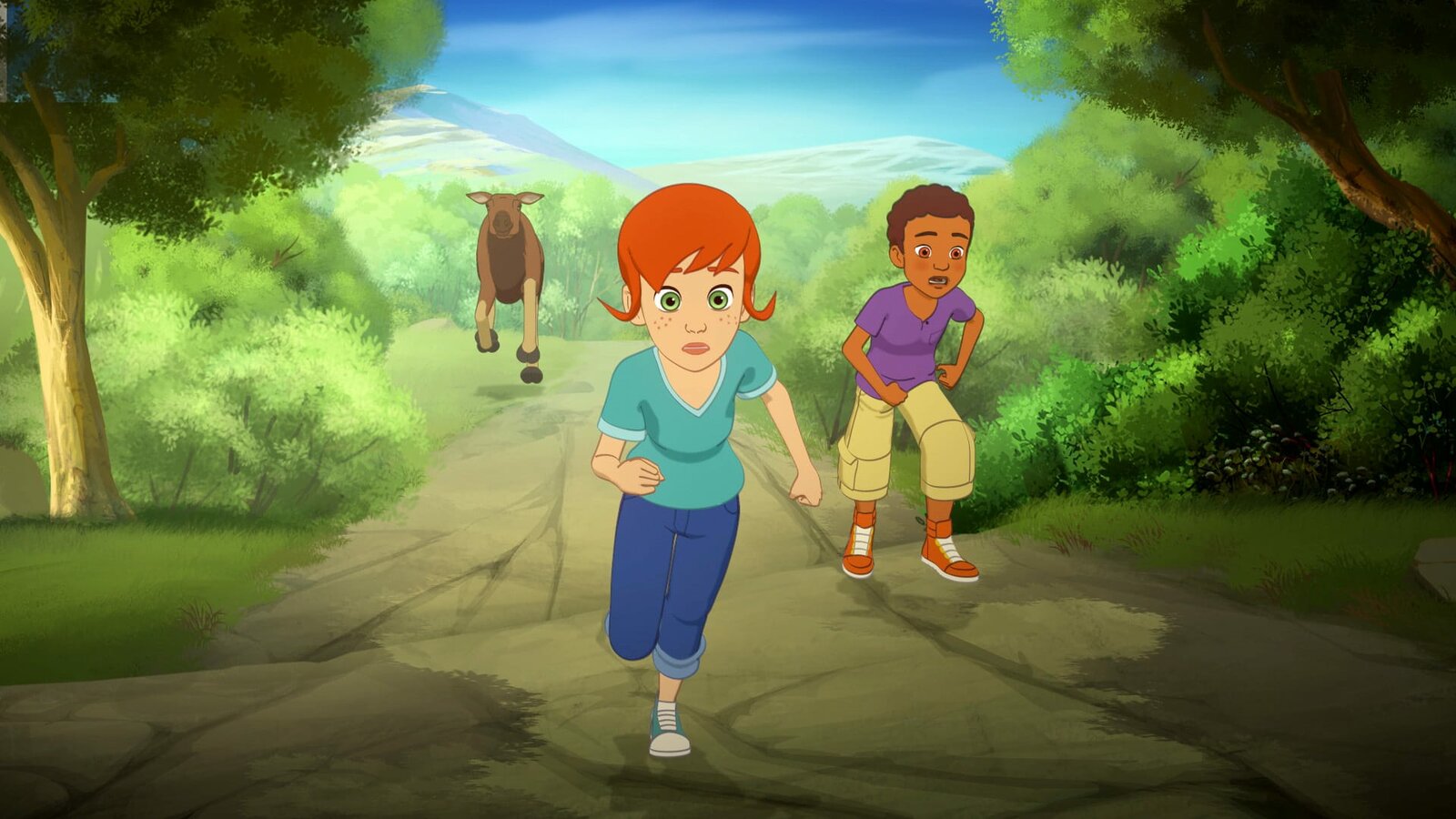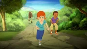 Der Blaubeerkuchen-WettbewerbZoé und Harvey können ihren Weg zu den Blaubeerbüschen nicht fortsetzen, weil die Brücke über den Fluss zerstört wurde.Bild: © ORF/ZDF/Superprod