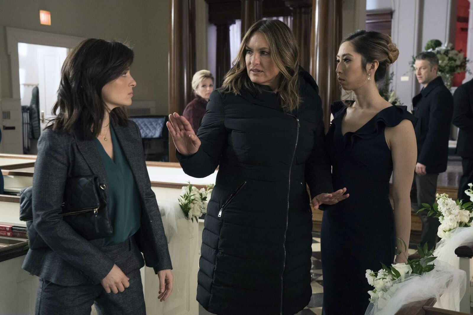 LAW & ORDER: SPECIAL VICTIMS UNIT -- "Dearly Beloved" Episode 2019 -- Pictured: (l-r) Shiri Appleby as Kitty Bennett, Mariska Hargitay as Lieutenant Olivia Benson, Josephine Huang as Heidi -- (Photo by: Virginia Sherwood/NBC)Bild: © NBC / Virginia Sherwood/NBC / Episodic / 2019 NBCUniversal Media, LLC