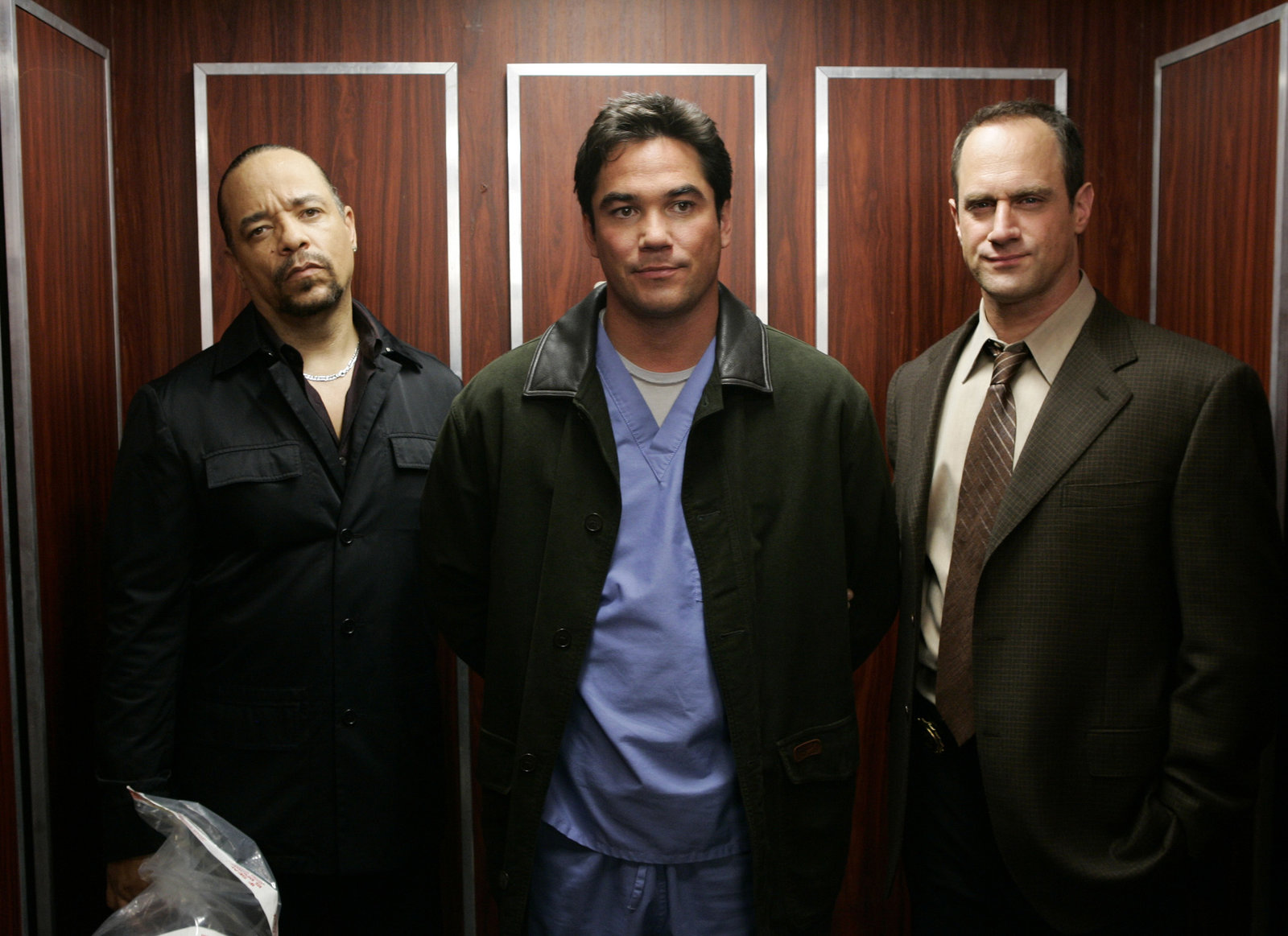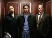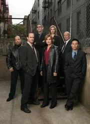 VerleitetL-R: Odafin "Fin" Tutuola (Ice-T), Det. Elliot Stabler (Christopher Meloni), Det. John Munch (Richard Belzer), Det. Olivia Benson (Mariska Hargitay), A.D.A. Casey Novak (Diane Neal), Capt. Donald Cragen (Dann Florek) und Dr. George Huang (B.D. Wong)Bild: © 13th Street