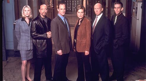 Die Frauen des Dr. KlebergL-R: Alexandra Cabot (Stephanie March), Odafin Tutuola (Ice-T), Elliot Stabler (Christopher Meloni), Olivia Benson (Mariska Hargitay),Donald Cragen (Dann Florek) und John Munch (Richard Belzer)Bild: © TF1