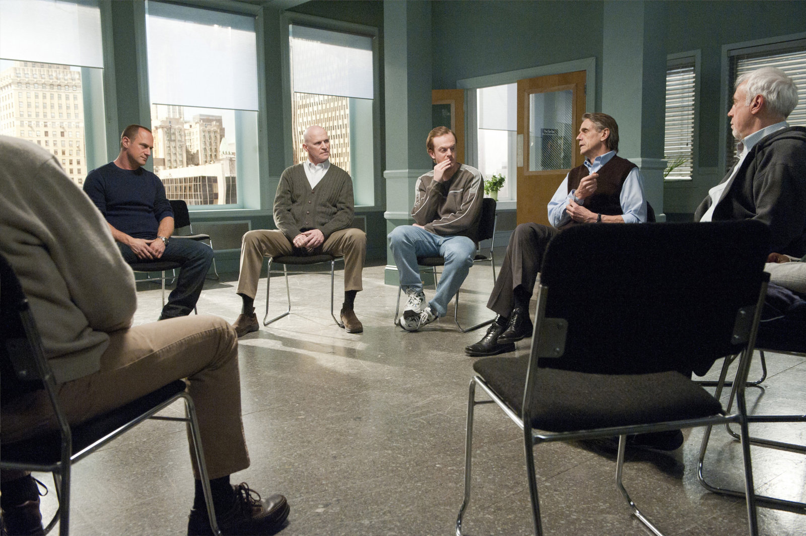 Therapie-- "Mask" Episode 1215 -- Pictured: (left, center right) Christopher Meloni as DetBild: © Universal Channel