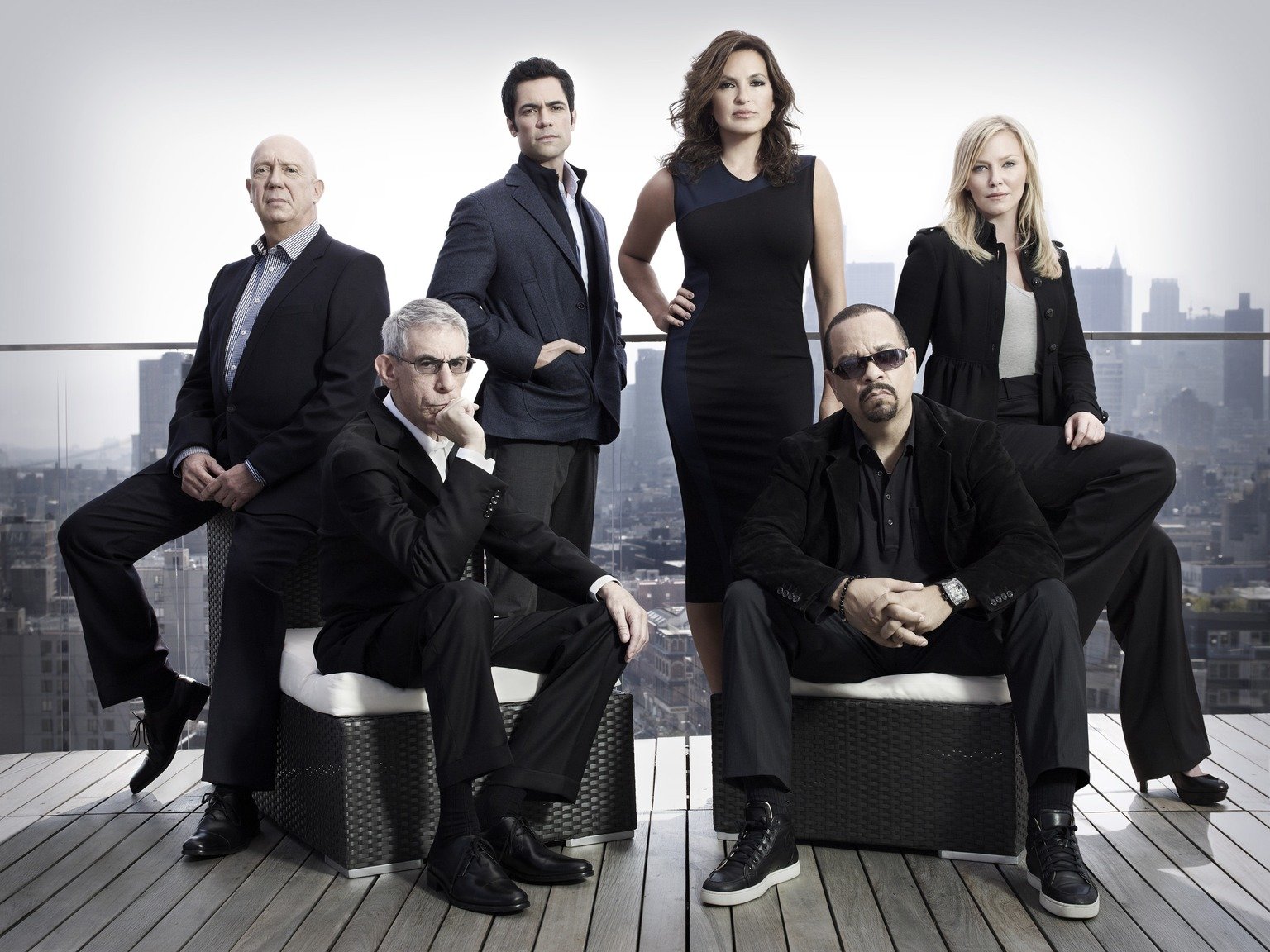 Hausarrest(13. Staffel) - Im Einsatz für Gerechtigkeit (v.l.n.r.): Cpt. Donald Cragen (Dann Florek), Sgt. John Munch (Richard Belzer), Det. Nick Amaro (Danny Pino), Det. Olivia Benson (Mariska Hargitay), Det. Odafin Tutuola (Ice-T) und Det. Amanda Rollins (Kelli Giddish)Bild: © ProSieben Media AG © 2012 NBC Universal Media, LLC