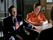AbschaumOfficer Edmunds (William Mapother, re.) hat sich an Drogendealern ger%cht und sie ermordet. Sein Anwalt (li., Darsteller unbekannt) verhandelt mit ADA Cabot...Bild: © RTL Nitro