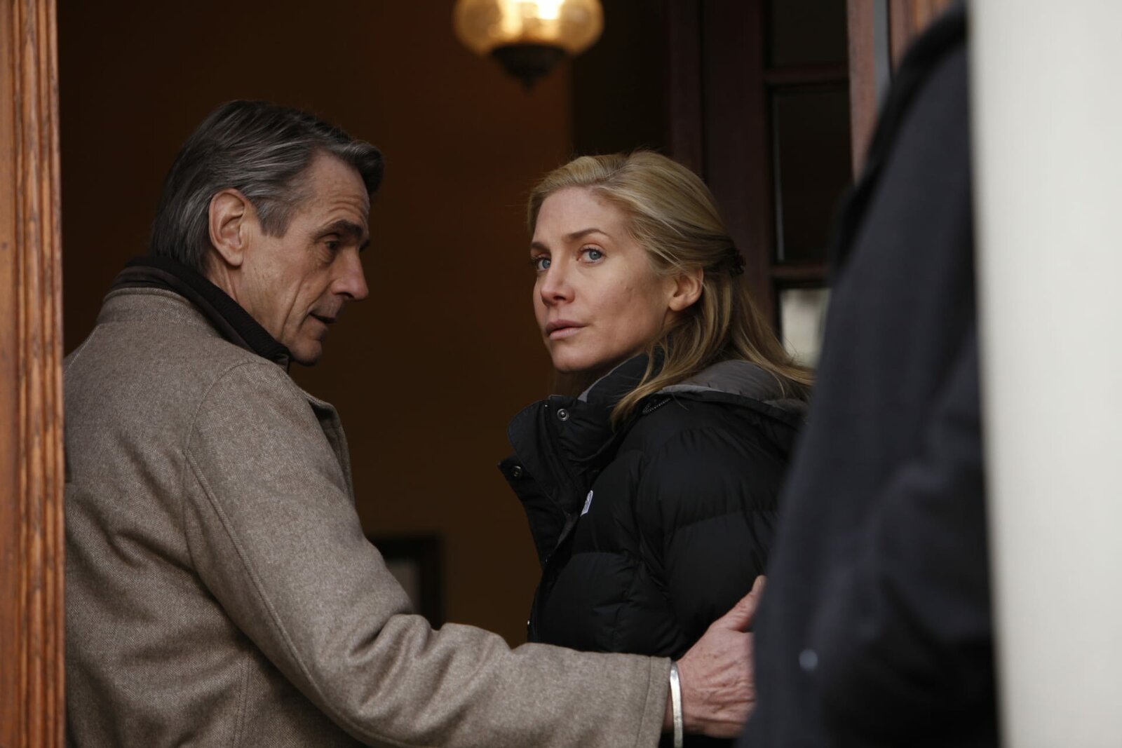 Ruhe sanft-- "Totem" Episode 1220 -- Pictured:(l-r) Jeremy Irons as Cap Jackson, Elizabeth Mitchell as June Frye -- Photo by: Will Hart/NBCBild: © NBCUniversal, Inc ©13TH STREET Photocredit Mandatory, Editorial Use Only, NO archive, NO Resale