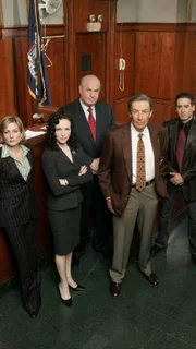 Familienschande1: Staffel: (v.l.) Kelly Gaffney (Amy Carlson), Tracey Kibre (Bebe Neuwirth), Arthur Branch (Fred Dalton Thompson), Lennie Briscoe (Jerry Orbach) und Hector Salazar (Kirk Acevedo)Bild: © TVNOW Die Verwendung des RTL NITRO-Bildmaterials ist nur zur redaktionellen Berichterstattung im Zusammenhang mit der jeweiligen Sendung unter Angabe der Credits/Quellenangabe und Beachtung der unter