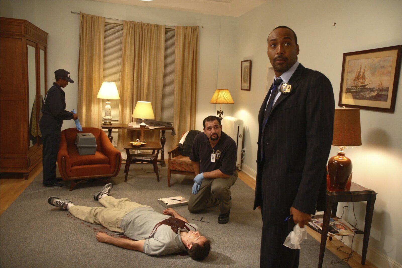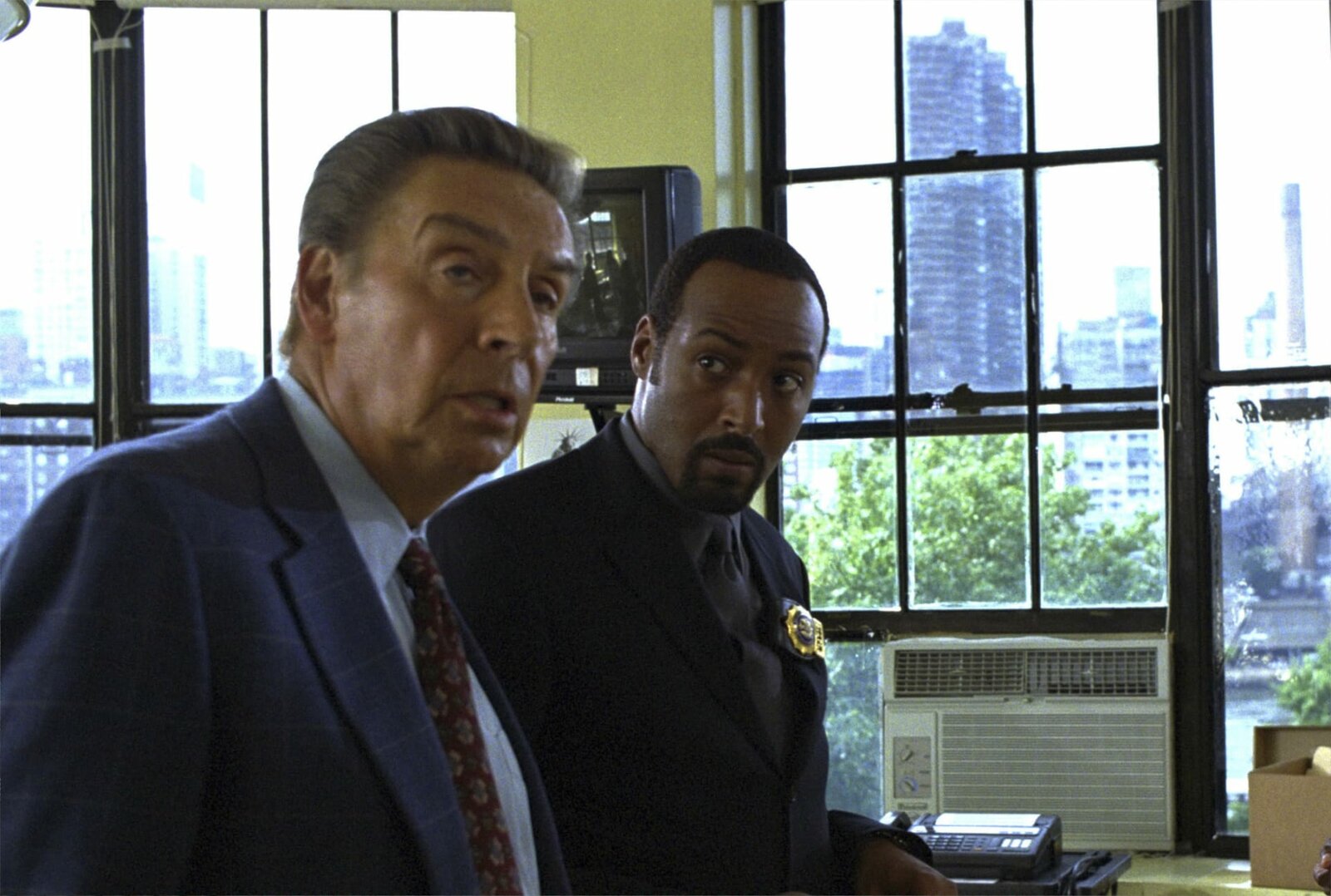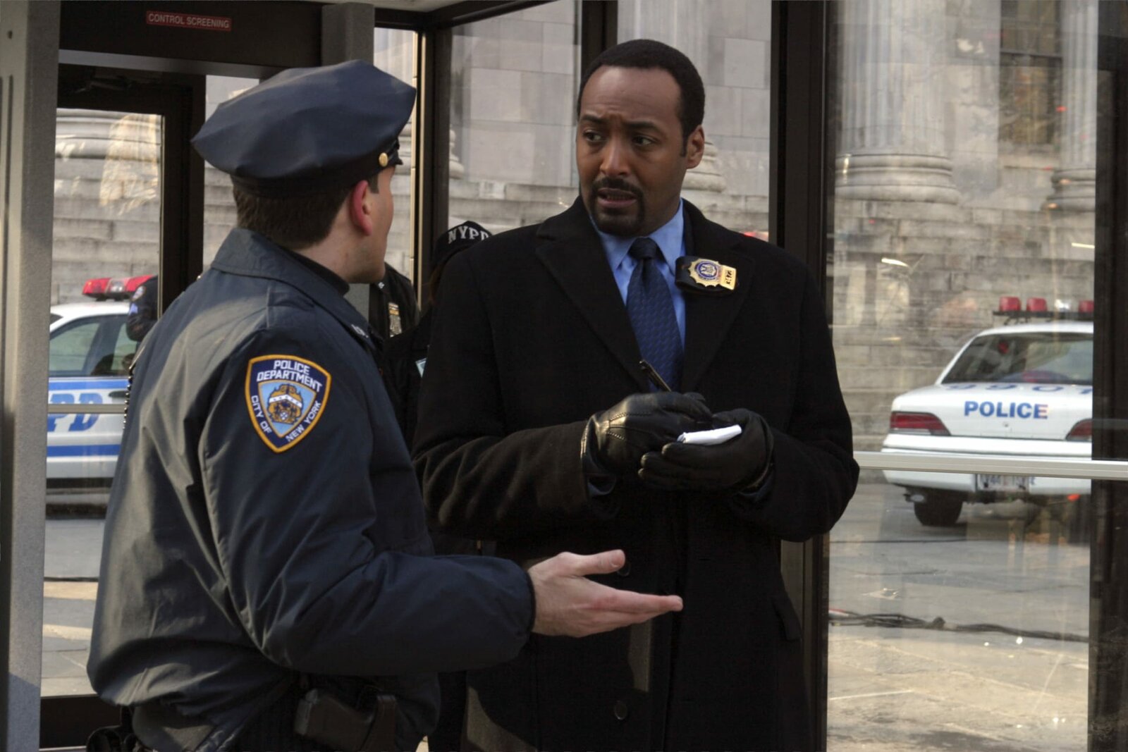 Schießerei im RathausBei einem Anschlag im Rathaus wurden der Stadtrat Johnson tödlich und ein Beamter der New Yorker Wasserversorgung leicht verletzt. Det. Edward Green (Jesse L. Martin, re.) beginnt mit den Ermittlungen.Bild: © 13th Street