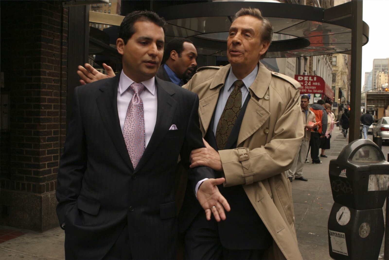 Der Tod des KaviarkönigsAm Morgen nach seiner Hochzeit wird der alternde persische Kaviarhändler Manny Soleimani tot in seinem Bett aufgefunden. Sein Sohn Ben (Firdous Bamji, li.) glaubt nicht an einen natürlichen Tod seines Vaters und verlangt eine Obduktion. Det. Lennie Briscoe (Jerry Orbach, re.) und Det. Ed Green (Jesse L. Martin) übernehmen den Fall als sich herausstellt, dass das Opfer tatsächlich erstickt worden ist.Bild: © 13th Street