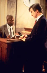 WürdeZwischen dem Verteidiger Jenson (Richard Thomas, li.) und Staatsanwalt Cutter (Linus Roache) kommt es zum verbalen Schlagabtausch.Bild: © 13th Street