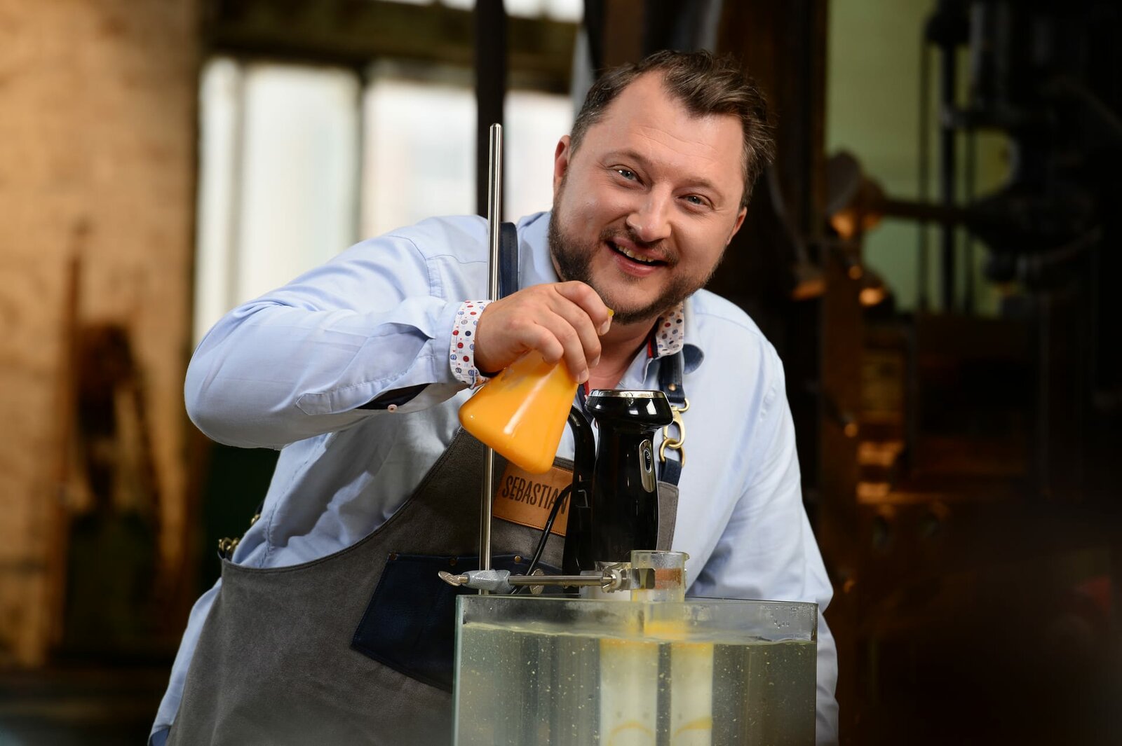 Miese Maschen im Snack-RegalWie wird aus Zucker ein klebriges Kaubonbon? Für die richtige Konsistenz greift Sebastian Lege zu einer Bohrmaschine.Bild: © ZDF und Jonathan Ziegler.