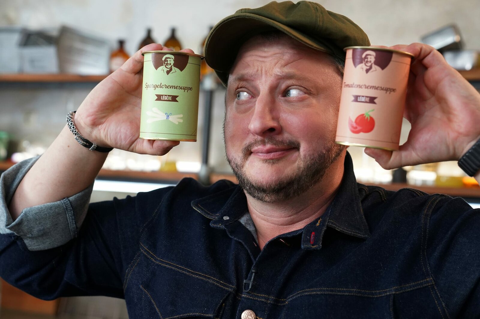 Fragwürdige FertigprodukteGemüsesuppe aus der Dose: Sebastian Lege zeigt, wie das beliebte Produkt auch mit wenig Sahne schön cremig und jahrelang haltbar gemacht wird.Bild: © ZDF und Esteve Parareda.