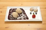 Das große WeihnachtsdinnerDie Nachspeise: Walnuss-Krokant-Eis an Meringue mit warmem Bühler Zwetschgenkompott.Bild: © SWR/megaherz/Andreas Maluche
