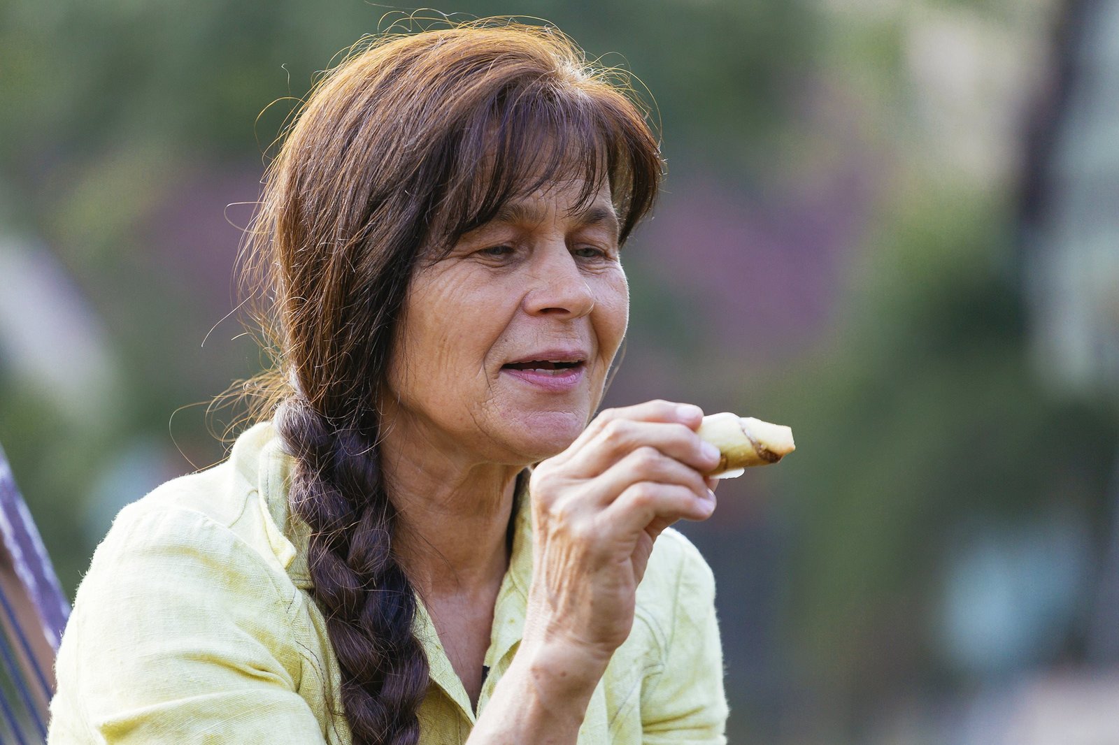 Die Hofmeisterschaft: Auf dem Hof von Ingrid Jauernik in HohenloheIngrid Jauernik mit einen kleinen Snack: Süße Hörnle für zwischendurch.Bild: © SWR/megaherz/Andreas Maluche