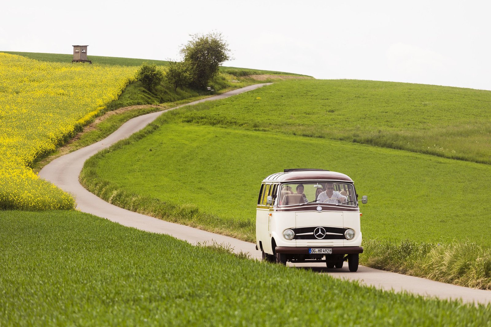 In den Schwäbischen Wald zu Anja FreyAndreas Schengel und Oldtimerbus "Willi" (Mercedes Benz Oldtimerbus O 319 Panorama, Baujahr 1963) auf dem Weg in den Schwäbischen Wald nach Oberrot, Landkreis Schwäbisch Hall zu Anja Frey auf den Völkleswaldhof (Demeter Betrieb).Bild: © ZDF und SWR/megaherz/Andreas Maluche.