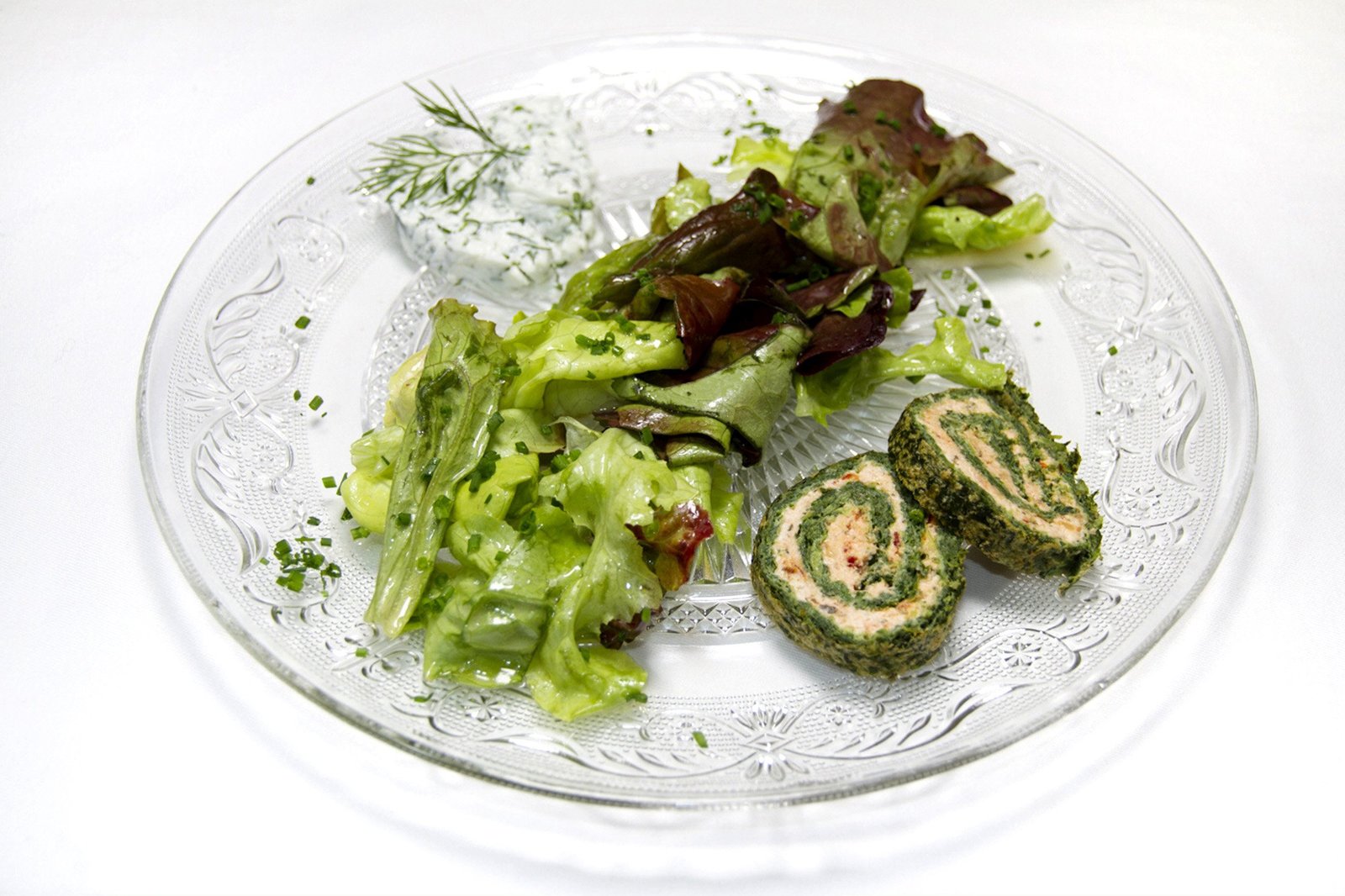 In den Hochschwarzwald zu Barbara ReesSWR Fernsehen LECKER AUFS LAND - EINE KULINARISCHE REISE - STAFFEL III, FOLGE 1, "In den Hochschwarzwald zu Barbara Rees", am Mittwoch (07.08.13) um 20:15 Uhr. Die Vorspeise bei Barbara Rees: Gemischter grüner Salat mit Ziegenfrischkäseterrine und Spinat-Bruschetta-Rolle.Bild: © SWR/megaherz/Andreas Maluche