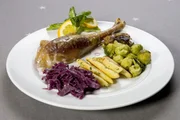 Das große WeihnachtsmenüHauptspeise: Knusprige Gans mit Rotkohl, Rosenkohl und Schupfnudeln.Bild: © SWR/megaherz/Johannes Holland