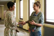 Von weit her (1)Julia (Liane Forestieri, r.) hat Lena (Patricia Aulitzky) ein Geschenk zu ihrer Praxiseröffnung gemacht.Bild: © ZDF und Bernd Schuller