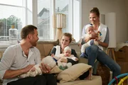 Babyglück hoch drei (1)Lena Lorenz (Patricia Aulitzky, r.) weiß, dass auf die Drillings-Eltern Emma (Cornelia Gröschel) und Karl Wagner (Bernhard Piesk) viel Arbeit zukommt.Bild: © ZDF und Marco Nagel.