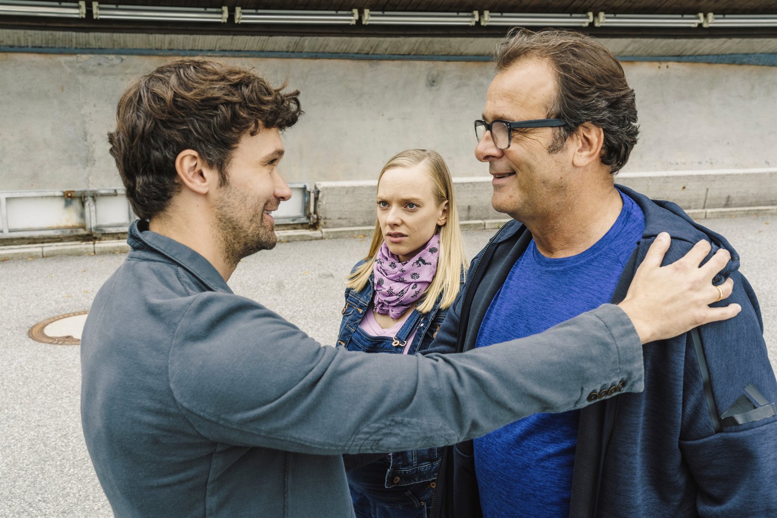 Kind da, Job weg (1)Bastian Pfeiffer (Raban Bieling), Julia Obermaier (Liane Forestieri), Leo Lorenz (Fred Stillkrauth)Bild: © ZDF und Susanne Bernhard.