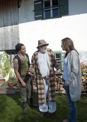 Willkommen im Leben (1)Lenas (Patricia Aulitzky) Opa Leopold (Fred Stillkrauth, m.) will im Pyjama den Stall ausmisten. Bastian (Raban Bieling) kann ihn nicht zurück halten. Honorarfrei - nur für diese Sendung bei Nennung ZDF und Thomas K. SchumannBild: © ZDF und Thomas R. Schumann