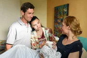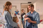 Ein neuer Anfang (1)Melanie Hofmann (Tessa Mittelstaedt), r.) hofft, dass Christoph (Andreas Kiendl) das Baby irgendwann genauso annehmen kann, wie Tochter Pia (Electra Maier).Bild: © ZDF und Susanne Bernhard.
