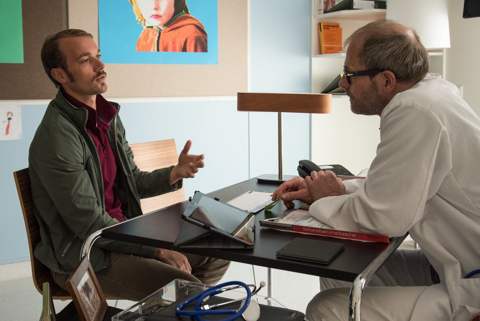 Eindeutig uneindeutig (1)Thomas Cramer (Max Woelky, l.) möchte von Dr. Keller (Thomas Limpinsel) wissen, ob sein Baby nicht operiert werden kann.Bild: © ORF2