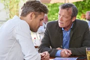Zwei Väter (1)Leo Lorenz (Fred Stillkrauth, l.) bespricht sich mit seinem Freund und Anwalt Simon Schrozmayr (Miguel Herz-Kestranek) über eine Möglichkeit, den Lorenzhof vor dem Abriss zu retten.Bild: © ZDF und Susanne Bernhard.